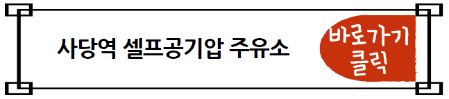 사당역에 있는 주유소에서 셀프 공기압 점검을 하실 수 있습니다. 이 주유소는 대형 주유소로써 셀프 차량 청소도 가능하며 공기압도 셀프로 점검할 수 있어 부담 없이 들러 공기압 점검을 하실 수 있습니다.