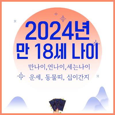 2024년 갑진년 기준으로 만 18세가 몇 년생인지, 세는나이, 연나이, 만 나이, 동물띠, 십이간지를 알아보도록 하겠습니다.