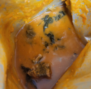 사진에서 보이는 것처럼 한팩 용량은 1000g인데 뼈가 3덩어리 있다. 목뼈살 쪽이라 뼈크기가 평소에 먹던 감자탕의 등뼈보다는 작다. 맛은 매콤 칼칼하며 감자탕맛이 난다.