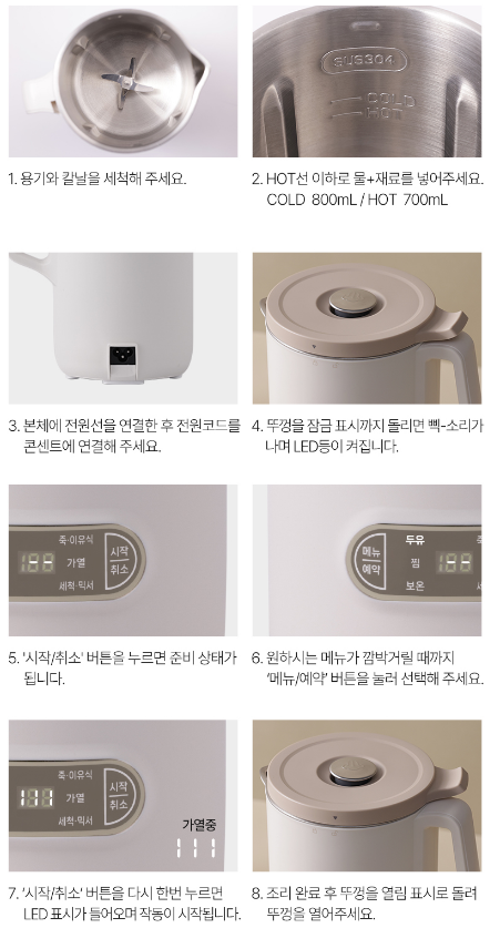 첨가물이 있는 시판용 두유가 아닌 직접 두유 제조기를 통해 두유를 제조함으로써 최적의 온도에서 신선한 두유를 만들어 드실 수 있습니다.