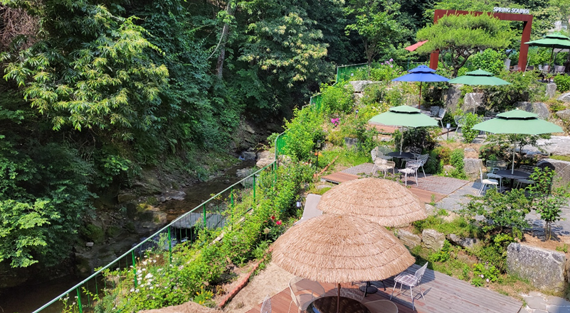 수지 동천동에 스프링 사운즈라는 대형 베이커리카페를 소개합니다. 용인에서 대형베이커리 카페는 주로 처인구에 있지만 수지구에서는 이만큼 큰 카페는 처음 보는 것 같습니다. 게다가 시설이나 환경이 우수하며 숲 속 안에 와있는 듯한 느낌이 드네요. 계곡물이 졸졸 흐르는데 아이와 와도 참 좋겠다 싶습니다.