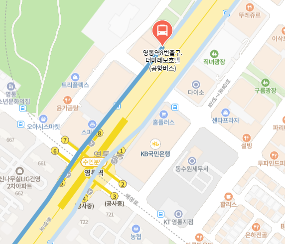 수원 영통역 8번출구 더마레보호텔에서 인천공항으로 공항버스 예약방법과 탑승장소를 알려드립니다. 수원 영통역 8번출구 더마레보호텔에서 인천공항으로 가는 버스는 현재 공항버스 4100가 운영되고 있습니다.