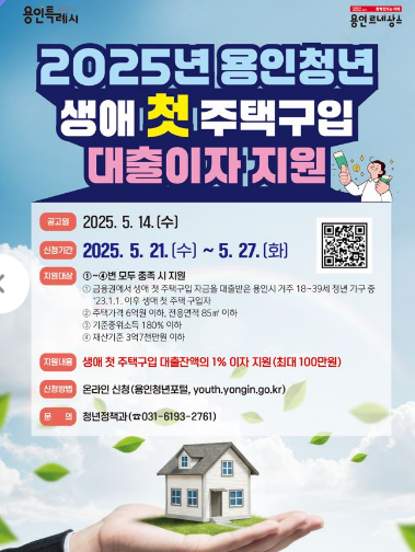 2025년 용인청년 생애 첫 주택구입 대출이자 지원사업은 청년의 주거비 부담을 경감하고 안정적인 주거환경을 제공하기 위해 첫 주택 구입 대출이자 일부를 지원하는 사업입니다.