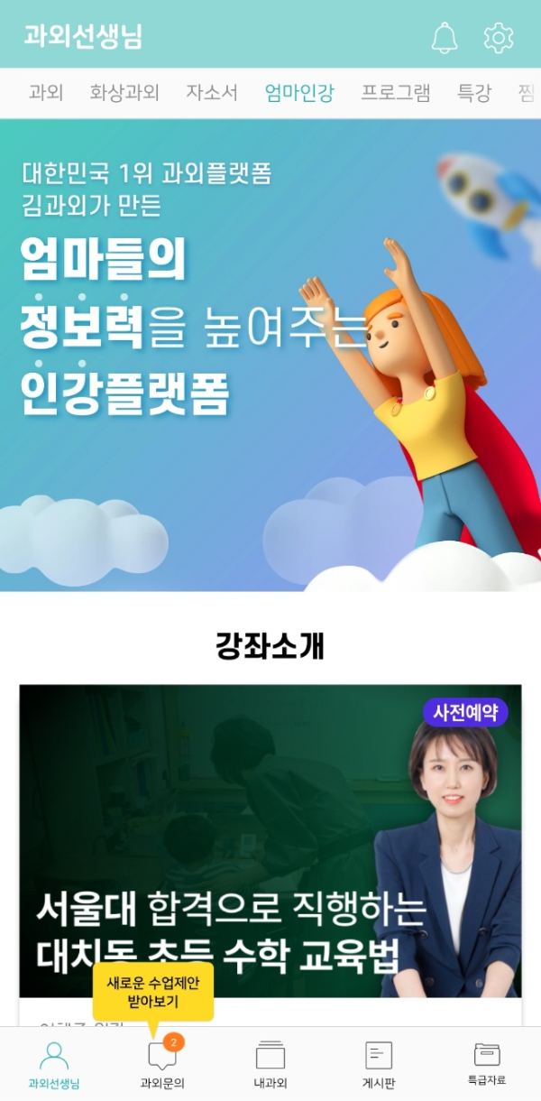 단순히 과외뿐만이 아니라 엄마들이 정보를 얻을 수 있는 온라인 강의, 프로그램, 특강 등을 제공하여 정보의 비대칭성을 해소하고 보다 많은 사람들이 좋은 정보를 보다 쉽게 접할 수 있도록 도와준다.