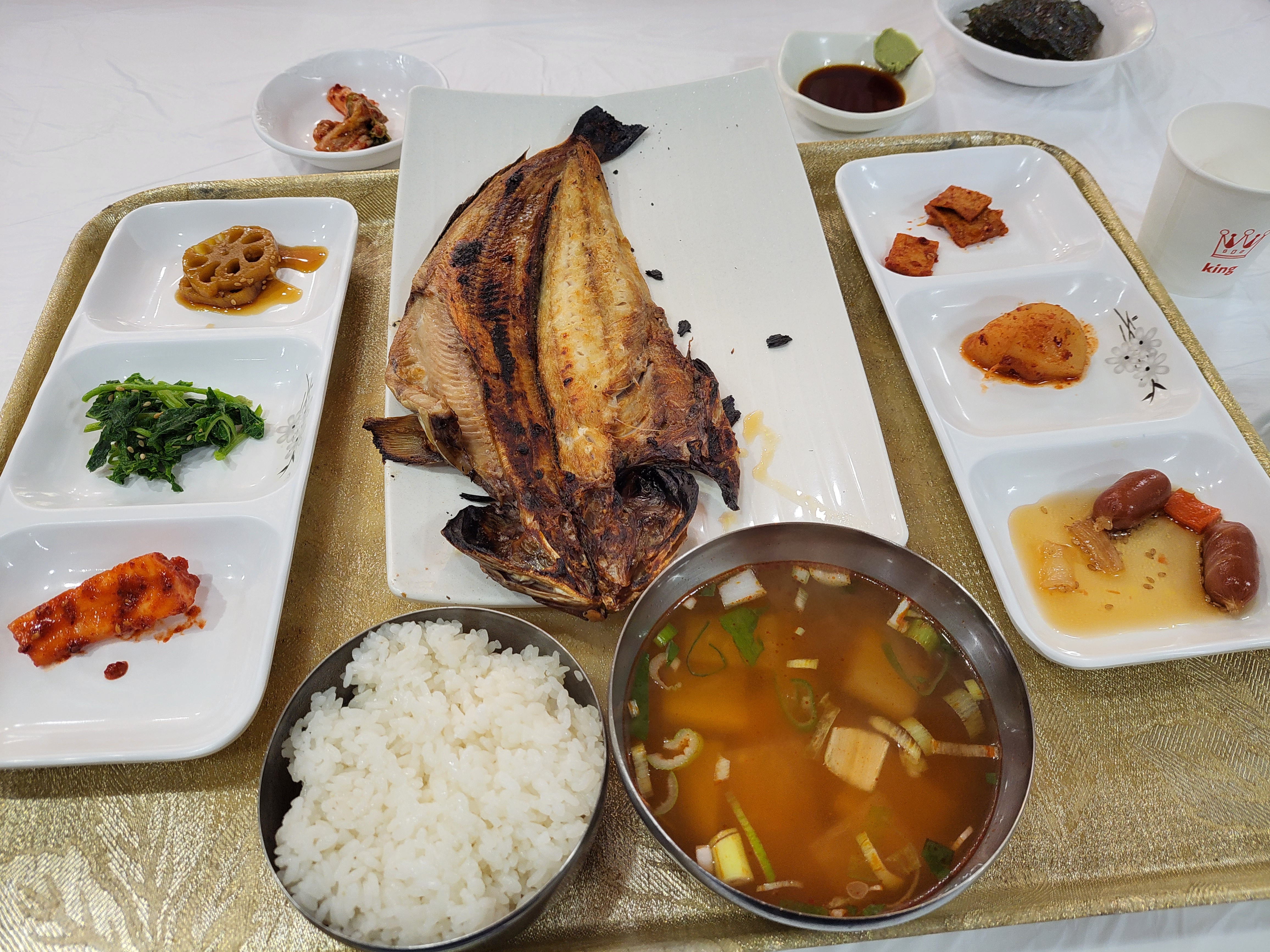 메뉴가 그냥 흔한 백반 메뉴이고 혼자 갔기에 고등어구이 백반을 시켰다. 자주 오는 것처럼 보인 손님들은 7천 원 백반을 드시는 것 같은데 기본 백반 반찬에 고등어니 임연수어니 제육이니가 추가되는 것이기 때문에 아침식사니 만큼 가볍게 먹으려면 백반으로 가도 될 것 같다.