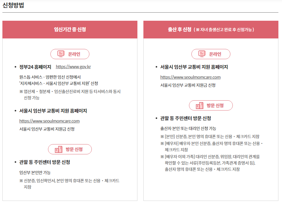 서울시에서 교통약자인 임산부의 이동편의와 경제적 부담을 덜어 주어 건강한 출산환경을 지원하기 위해 임산부 교통비 지원사업을 진행하고 있으니 사업내용을 보시고 혜택을 꼭 받으시기 바랍니다.