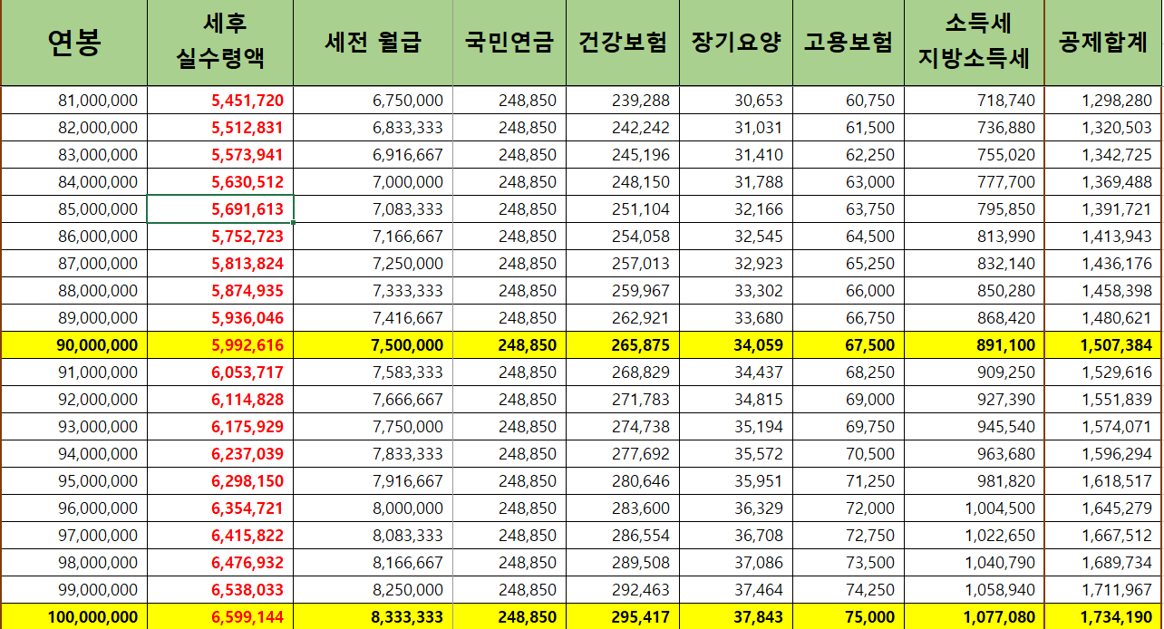 | 2022 연봉 실수령액 1억 실수령액표 4대 보험 계산기 (0) | 2022.09.15 |