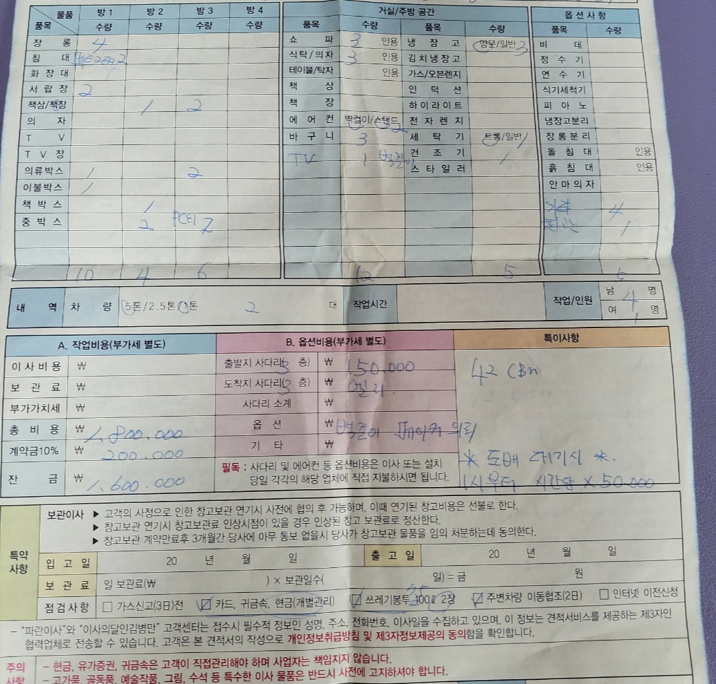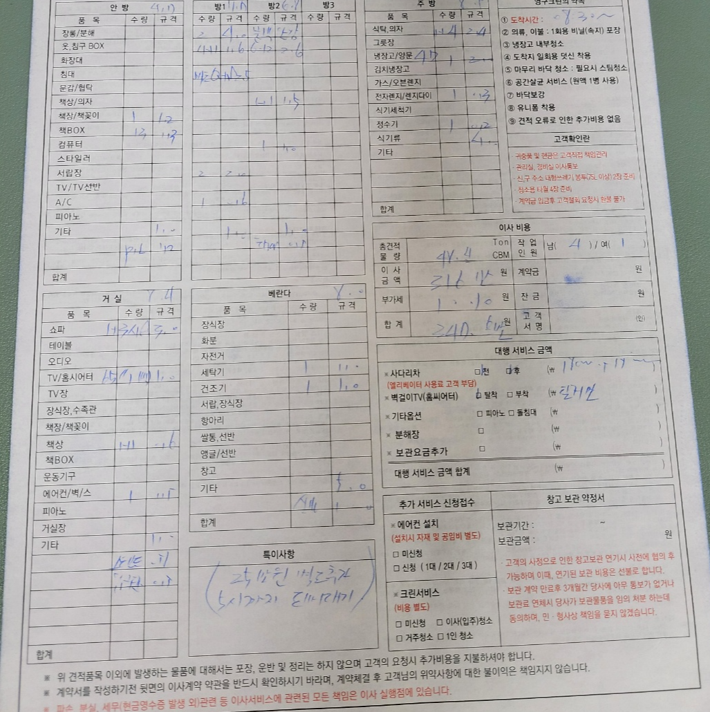 이사라 함이 일생일대의 몇 번 안 되는 큰 일이자 중요한 날이다. 요즘은 포장이사라 짐을 싸지 않아도 되는 부담감은 덜었지만 아무래도 이삿날이 큰 돈거래가 있기 때문에 마음이 정신이 없고 긴장하게 된다. 그리하여 이사를 할 때 처음부터 끝까지 완벽하게 업무처리를 해주면 그보다 더 완벽하고 고마울 것이 없다